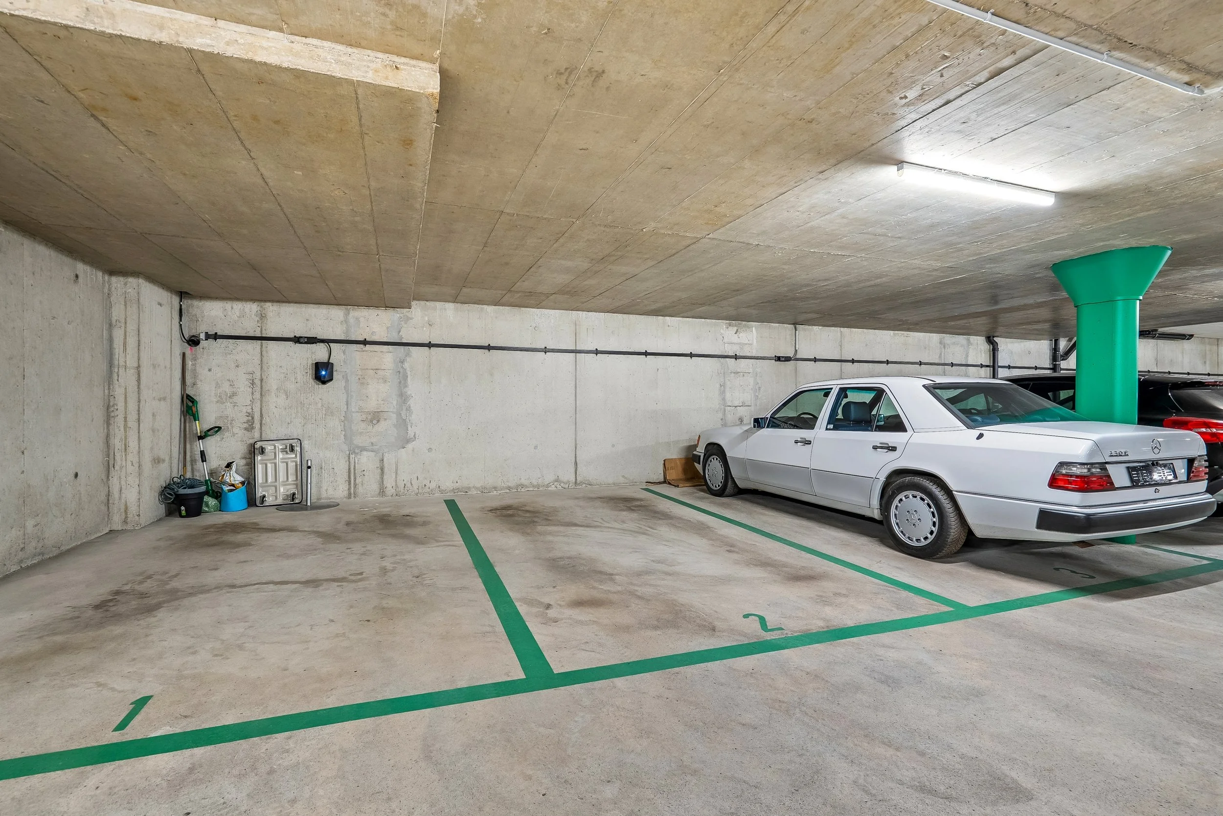 Über die Aussentreppe gelangen Sie in die Tiefgarage sowie in Ihr persönliches Kellerabteil mit kontrollierter Zu- und Abluft für optimale Luftzirkulation. Ein besonderes Highlight: In der Tiefgarage ist bereits ein Flachbandkabel installiert, an das sich problemlos eine Ladestation für ein Elektrofahrzeug anschliessen lässt – zukunftsorientiert und nachhaltig gedacht.
