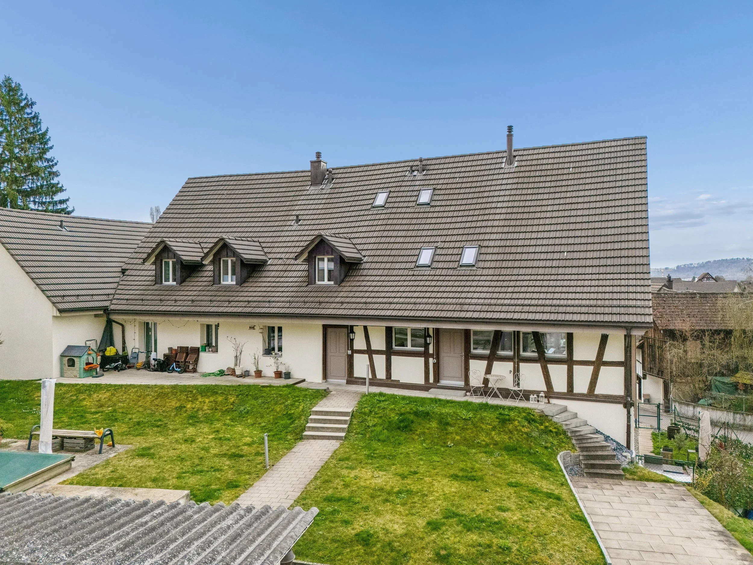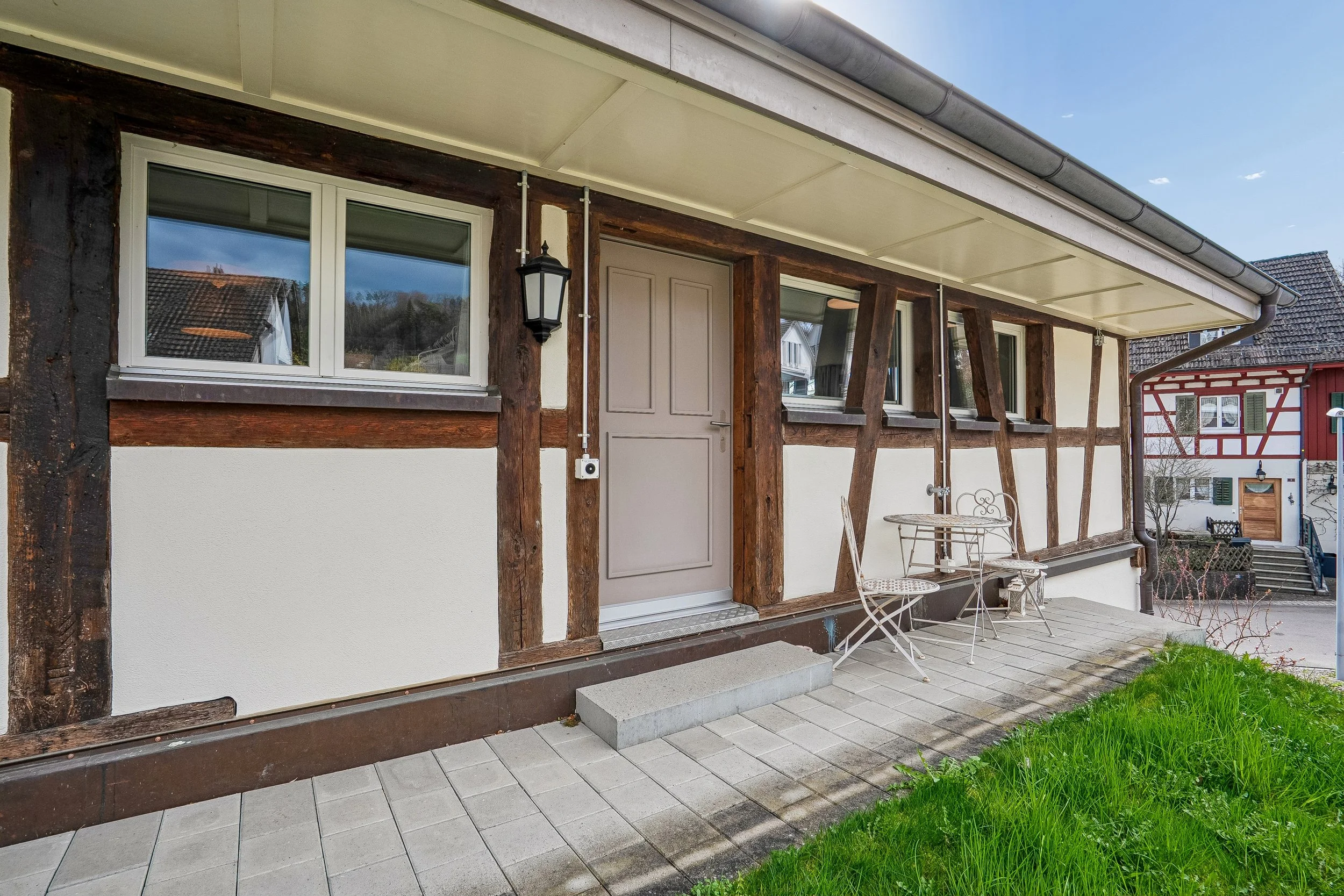 Die Wohnung verfügt über einen eigenen, direkt zugänglichen Eingang – komfortabel und unkompliziert im Alltag. Von dort führt eine kurze Treppe hinunter zu Ihrem privaten Sitzplatz, einem Ort zum Abschalten und Geniessen. Ob beim gemütlichen Grillieren mit Freunden und Familie, beim Entspannen in der Sonne oder beim ruhigen Ausklingen eines langen Tages.