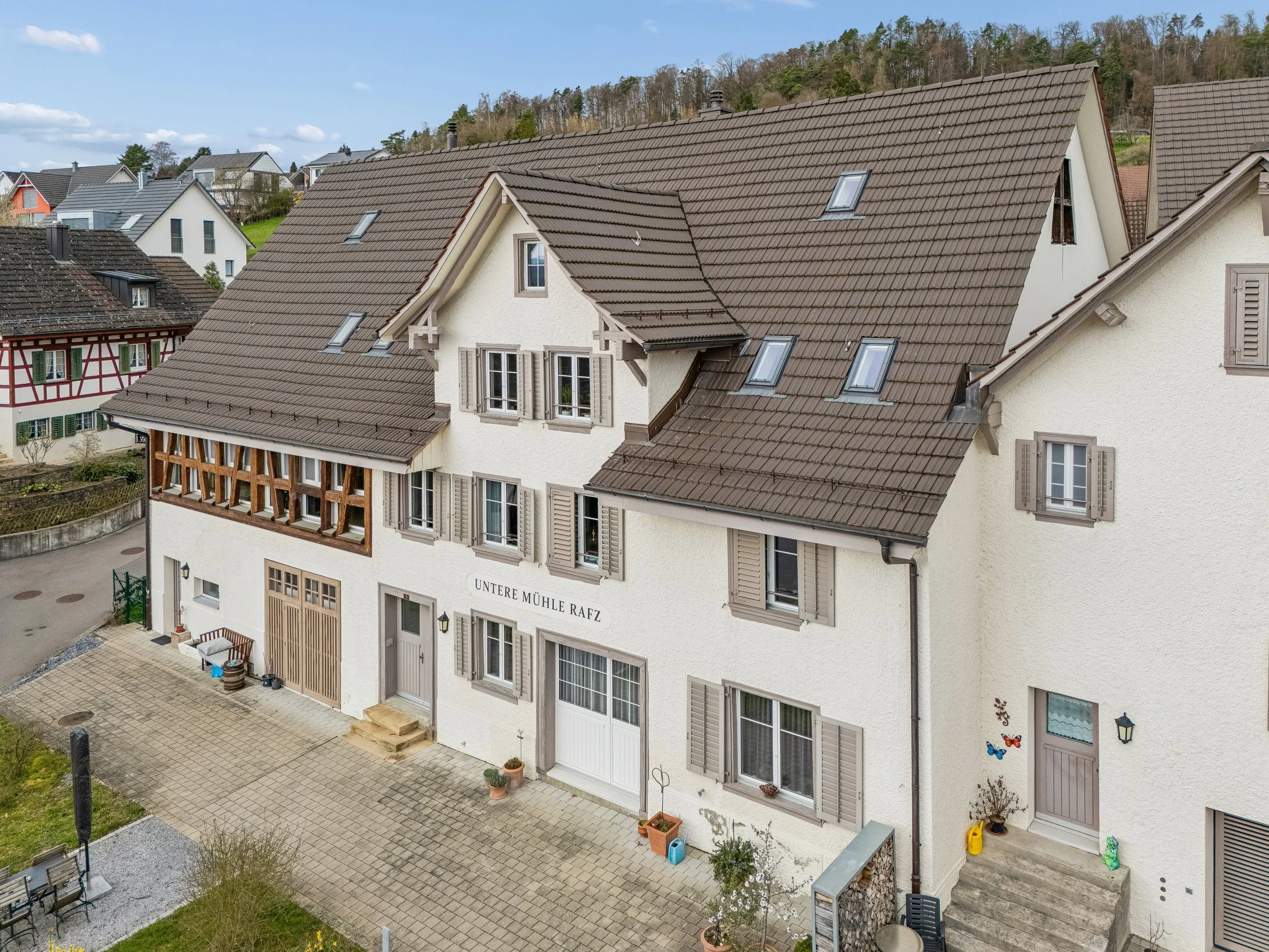 An zentraler und dennoch ruhiger Lage erwartet Sie dieses liebevoll sanierte Zuhause in der historischen Unteren Mühle in Rafz. Die 3.5-Zimmer-Wohnung im Obergeschoss – mit Eingang im Erdgeschoss und eigenem Gartensitzplatz – verbindet historisches Flair mit modernem Wohnkomfort auf hohem Niveau.