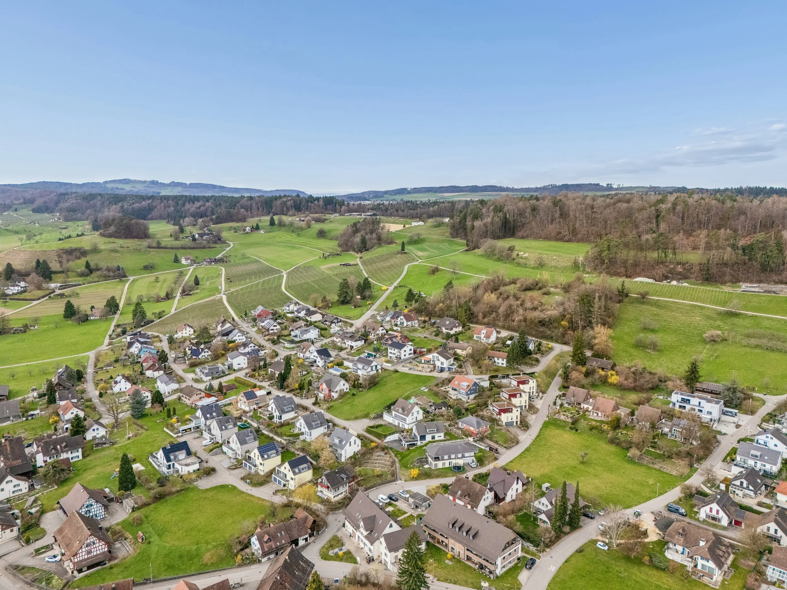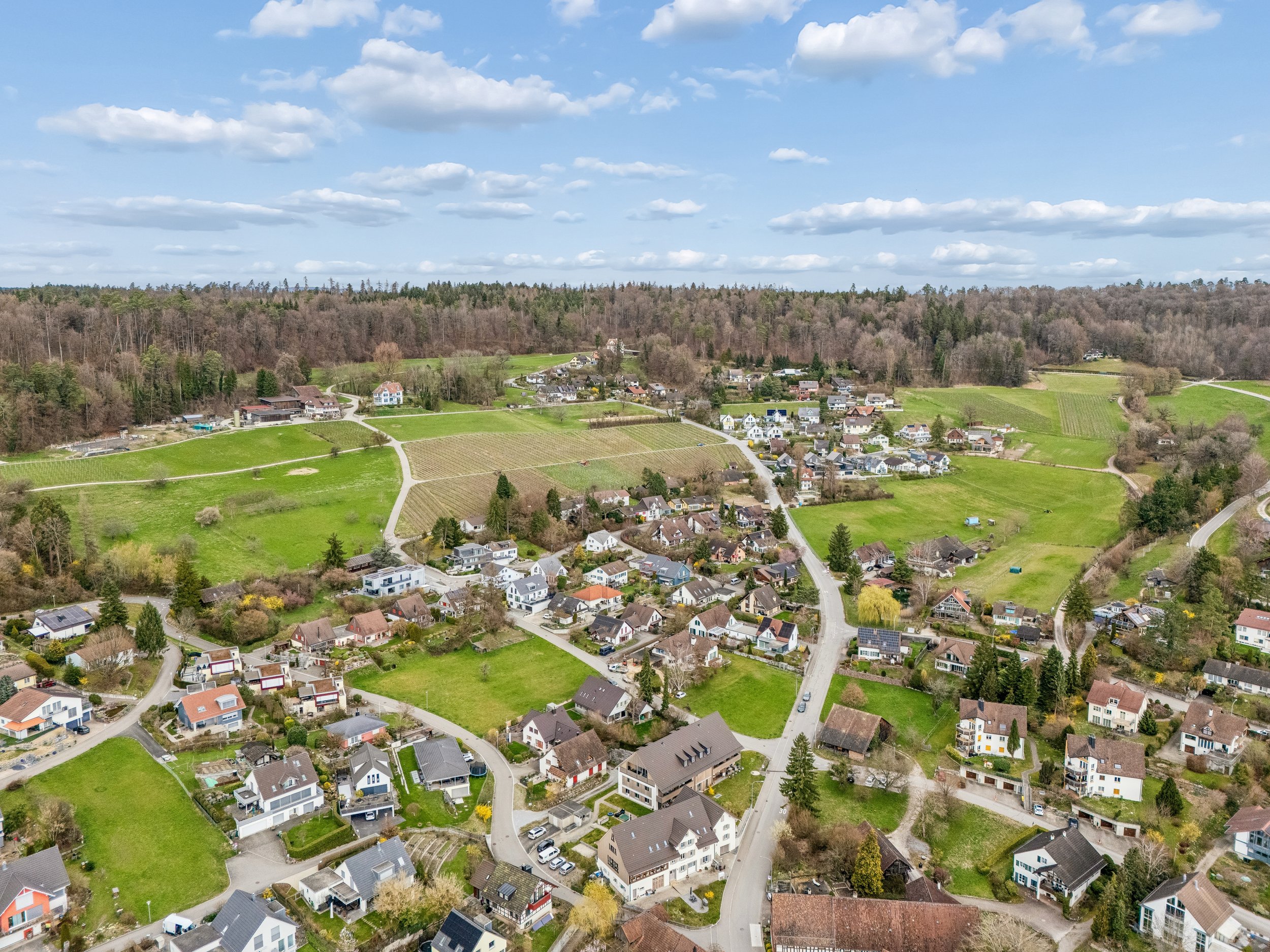 Die direkte Umgebung ist geprägt von gepflegten Liegenschaften, ruhigen Quartierstrassen und viel Grün. Felder, Wälder und Rebberge liegen nur einen Spaziergang entfernt und bieten Raum für Erholung und Bewegung. Trotz der zentralen Lage wirkt das Wohnumfeld angenehm entspannt und naturnah. Der Standort eignet sich ideal für Familien, Berufspendler und alle, die Ruhe mit praktischer Nähe verbinden möchten.